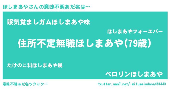 | 胡散臭い通販商品みたいなあだ名 | 『あなたにだけ特別に提供する世界で10本だけ現存している希少なブランデー…その名も「ほしまあや」』 |