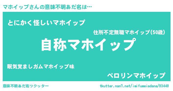 | 男性向けラノベタイトル風あだ名 | 『Re:マホイップから始める異世界生活』 |