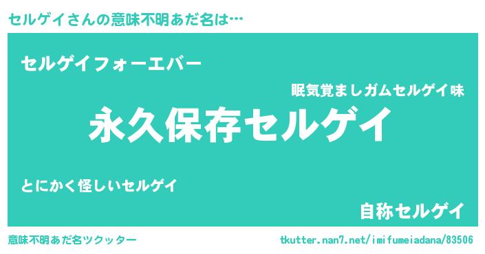 | 男性向けラノベタイトル風あだ名 | 『セルゲイという概念が存在しない退屈な世界 』 |