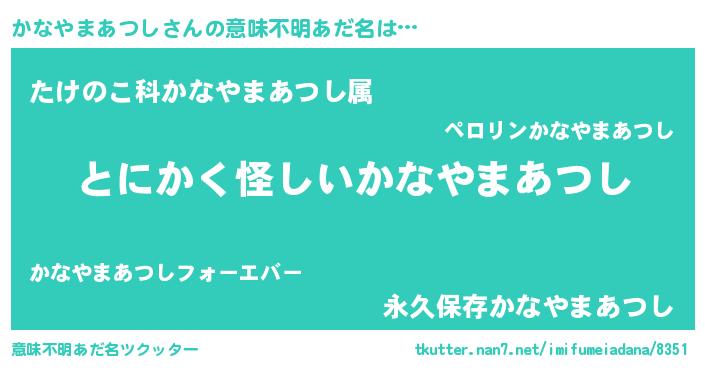 | 男性向けラノベタイトル風あだ名 | 『かなやまあつしの嫁は女の子じゃないと思った?』 |