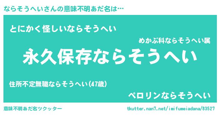 | ヘコむあだ名 | 『ならそうへい(遠い目)』『ならぷりん』 |