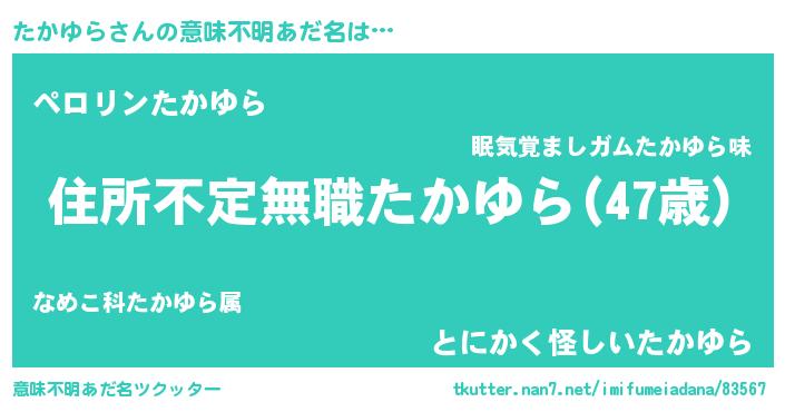 | 男性向けラノベタイトル風あだ名 | 『この素晴らしい世界にたかゆらを!』 |