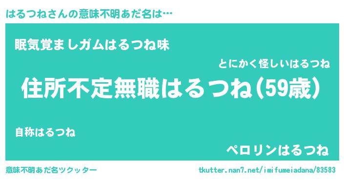 | 男性向けラノベタイトル風あだ名 | 『この素晴らしい世界にはるつねを!』 |