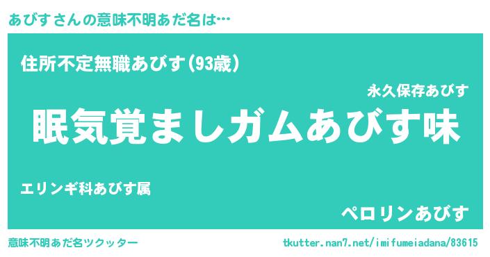 | 男性向けラノベタイトル風あだ名 | 『あびすに滅ぼされるだけの簡単なお仕事です』 |