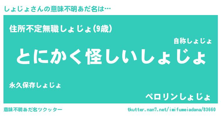 | 男性向けラノベタイトル風あだ名 | 『しょじょの嫁は女の子じゃないと思った?』 |