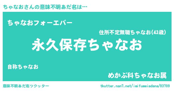 | 男性向けラノベタイトル風あだ名 | 『ちゃなおに滅ぼされるだけの簡単なお仕事です』 |