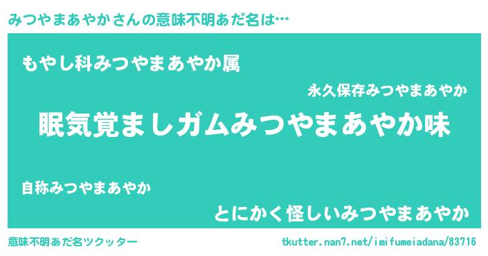 | 欧米人風あだ名 | 『みつやまあやか・ステッグマイヤー』 |
