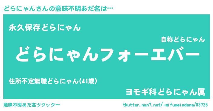 | 男性向けラノベタイトル風あだ名 | 『うちの娘の為ならば、俺はもしかしたらどらにゃんも倒せるかもしれない。』 |