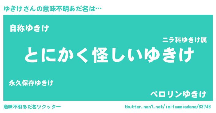| 男性向けラノベタイトル風あだ名 | 『はたらくゆきけさま!』 |