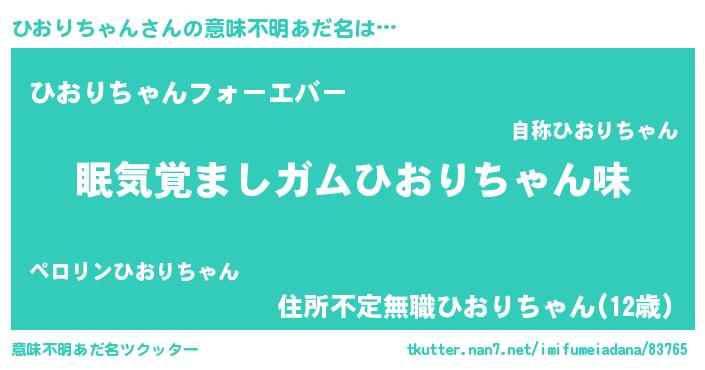 | 欧米人風あだ名 | 『ひおりちゃん・ステッグマイヤー』 |