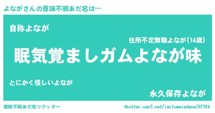 | ヘコむあだ名 | 『よなが(小並感)』『よなを』『豆乳』 |