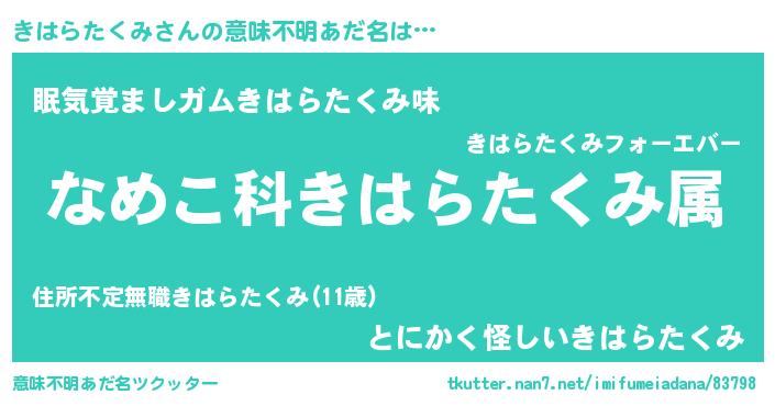 | 胡散臭い通販商品みたいなあだ名 | 『お金では代えられないイリジウム磁石…その名も「きはらたくみ」』 |