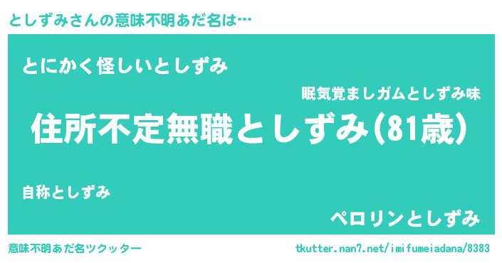 | 胡散臭い通販商品みたいなあだ名 | 『あなたにだけ特別に提供する世界で10本だけ現存している希少なブランデー…その名も「としずみ」』 |