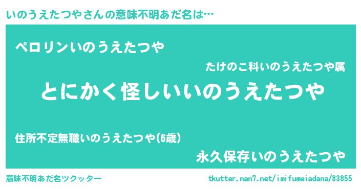 | 男性向けラノベタイトル風あだ名 | 『いのうえたつやの嫁は女の子じゃないと思った?』 |