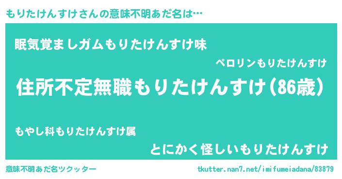 | 女子向けラノベタイトル風あだ名 | 『もりたけんすけが死なない童話 林檎のもりたけんすけの診療簿』 |