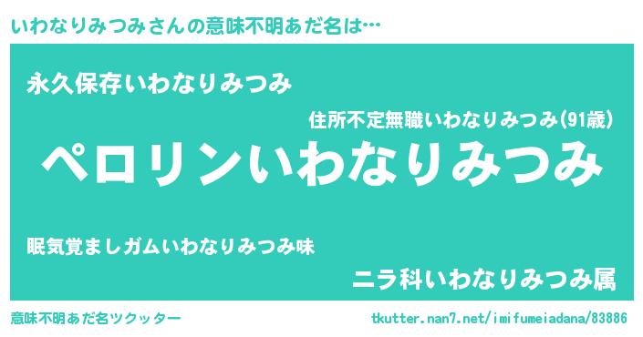 | ヘコむあだ名 | 『いわもー』『いわなりみつみ(遠い目)』 |