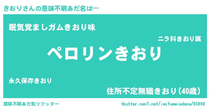 | 胡散臭い通販商品みたいなあだ名 | 『億万長者になれるブレスレット…その名も「きおり」』 |