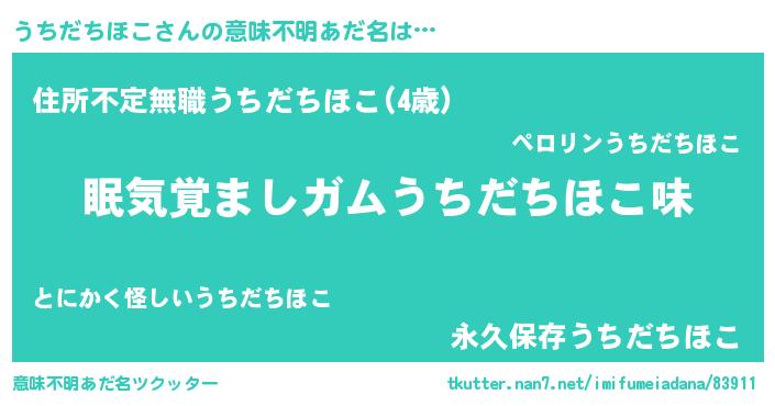| ヘコむあだ名 | 『うちだちほこ(爆)』『うちにー』 |