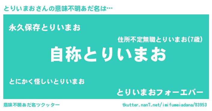 | 可愛いあだ名 | 『とりうちぇる』『とりいまおママ』 |