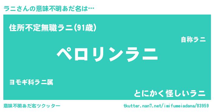 | 胡散臭い通販商品みたいなあだ名 | 『必ず成功する霊験あらたかなお札…その名も「ラニ」』 |