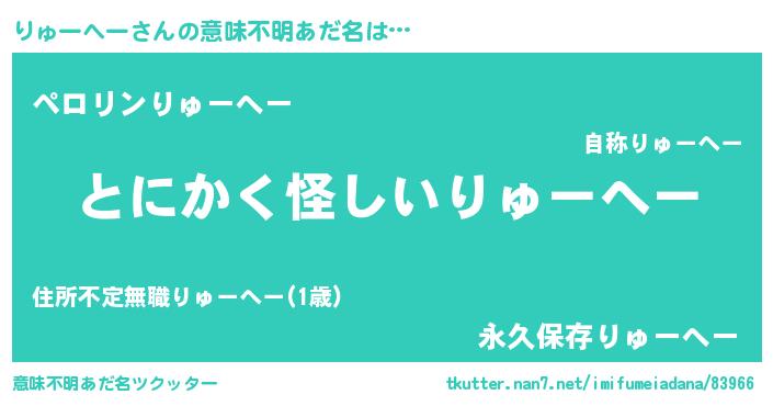 | 胡散臭い通販商品みたいなあだ名 | 『信頼と実績のサプリメント…その名も「りゅーへー」』 |