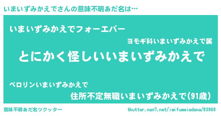 | 女子向けラノベタイトル風あだ名 | 『いまいずみかえで様がみてる』 |