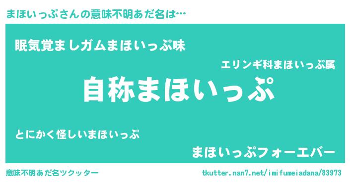 | 女子向けラノベタイトル風あだ名 | 『まほいっぷなんてお断りですっ。』 |