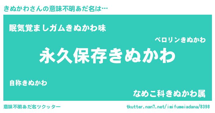 | 女子向けラノベタイトル風あだ名 | 『きぬかわの契約王妃』 |