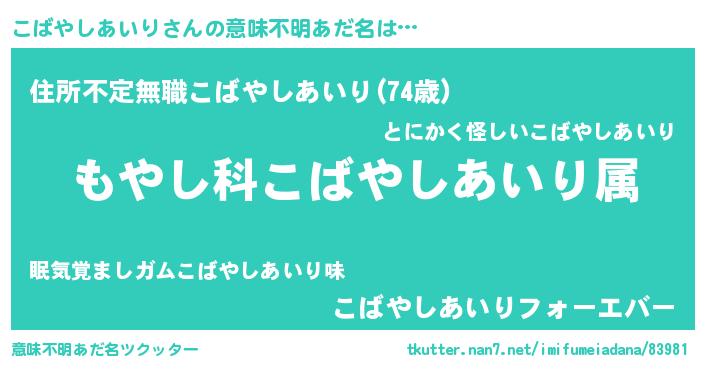 | 伝説のあだ名 | 『最古の忍者こばやしあいり』 |