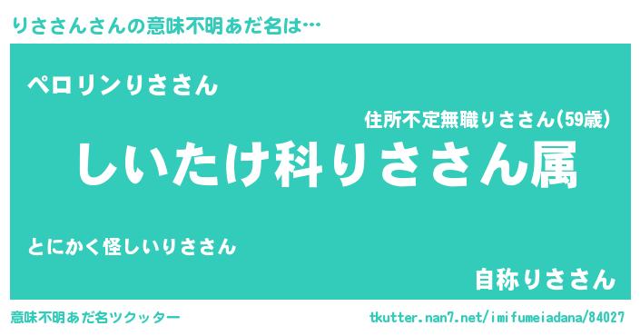 | 男性向けラノベタイトル風あだ名 | 『緋弾のリササン』『りささんの憂鬱』 |