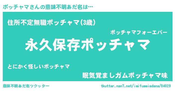 | 胡散臭い通販商品みたいなあだ名 | 『絶対に幸福をもたらす水素水…その名も「ポッチャマ」』 |