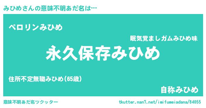 | 欧米人風あだ名 | 『みひめ・ステッグマイヤー』 |