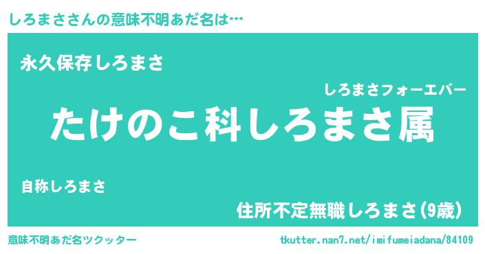| 胡散臭い通販商品みたいなあだ名 | 『来世でも幸せになれる健康食品…その名も「しろまさ」』 |