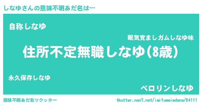 | 男性向けラノベタイトル風あだ名 | 『しなゆに滅ぼされるだけの簡単なお仕事です』 |