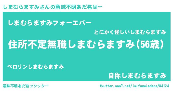 | 男性向けラノベタイトル風あだ名 | 『しまむらますみに滅ぼされるだけの簡単なお仕事です』 |