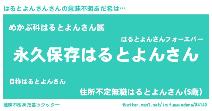 | 伝説のあだ名 | 『古より伝わる勇者はるとよんさん』 |