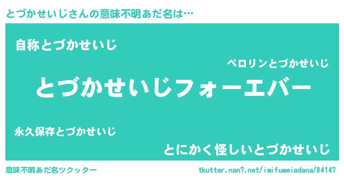 | 男性向けラノベタイトル風あだ名 | 『やはりとづかせいじの青春ラブコメはまちがっている 』 |
