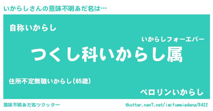 | 肩書あだ名 | 『いからし上級大将』『いからし閣下』 |