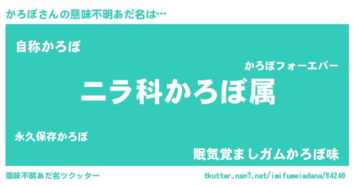 | 女子向けラノベタイトル風あだ名 | 『かろぼの玉の輿計画!』『かろぼ恋絵巻』 |