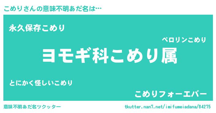 | ヒーロー風カッコイイあだ名 | 『ネオコメリ』『ウルトラこめりマン』 |