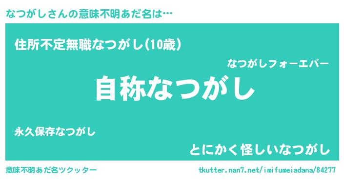 | 男性向けラノベタイトル風あだ名 | 『なつがしに滅ぼされるだけの簡単なお仕事です』 |
