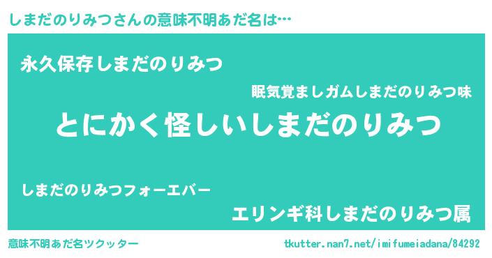 | 女子向けラノベタイトル風あだ名 | 『しまだのりみつの卵を拾いまして』 |