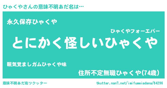 | 胡散臭い通販商品みたいなあだ名 | 『全米が絶賛したサプリメント…その名も「ひゃくや」』 |