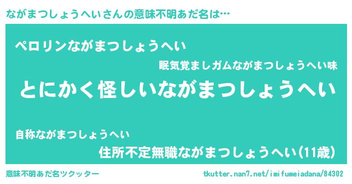 | 胡散臭い通販商品みたいなあだ名 | 『信頼と実績のサプリメント…その名も「ながまつしょうへい」』 |