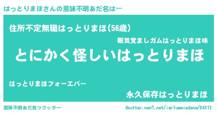 | 胡散臭い通販商品みたいなあだ名 | 『信頼と実績のペンダント…その名も「はっとりまほ」』 |