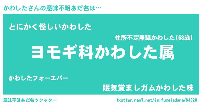 | ポケモン風あだ名 | 『カワキング』『ヒカワシタ』 |