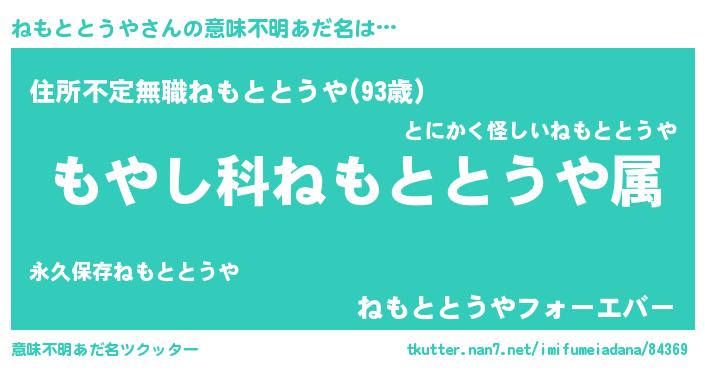 | 欧米人風あだ名 | 『トリンドルねもととうや』 |