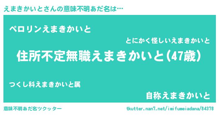 | 男性向けラノベタイトル風あだ名 | 『魔弾の王とえまきかいと』 |