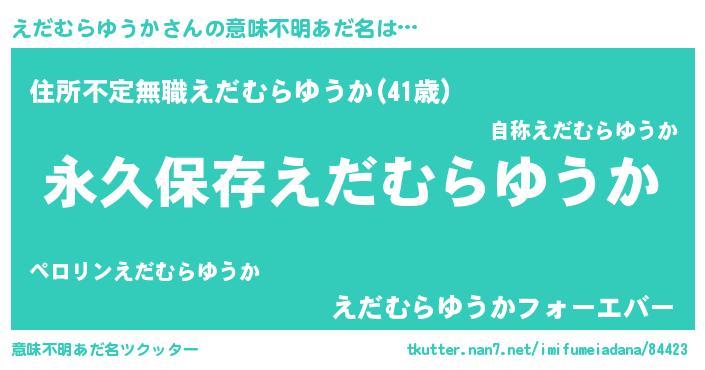 | ヘコむあだ名 | 『えだむらゆうか(爆)』『豆乳』 |