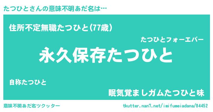 | 胡散臭い通販商品みたいなあだ名 | 『前代未聞の健康食品…その名も「たつひと」』 |